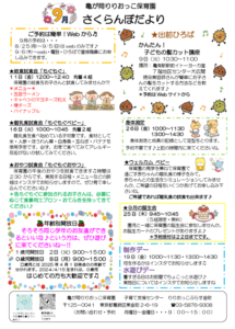 2025.08.27 お知らせ りりおっこぷらす金町・9月イベント情報 子育てひろば「りりおっこぷらす金町」令和7年9月イベント・カレンダーの更新を行いました。 9月の出前ひろばでは「かんたん!子どもの髪カット講座」を開催! 現役美容師さんが簡単にお子さんの髪をカットする方法を教えてくれます♪ その他、毎月恒例の「もぐもぐ」や誕生会、年齢別開放日など。楽しいイベント盛りだくさん!! 詳しくはおたよりをご覧ください。 各イベントの予約フォームは ➡ こちら