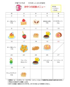 2026.02.19 お知らせ りりおっこぷらす金町・3月イベント情報 子育てひろば「りりおっこぷらす金町」3月イベント・カレンダーの更新を行いました。 ☆3月の出前ひろばは「お外で遊ぼう」 春の訪れを感じながら一緒に遊びましょう♪ ☆今月のお誕生会は「3月3日」 保育園のお友達と一緒にお誕生日をお祝いしませんか! その他にも試食会や制作デーなどイベントが盛りだくさん! 詳しくはお便りをご覧ください。 3月のおやつ試食会メニューも掲載しております。併せてご確認ください。 イベントのご予約は ➡ こちら